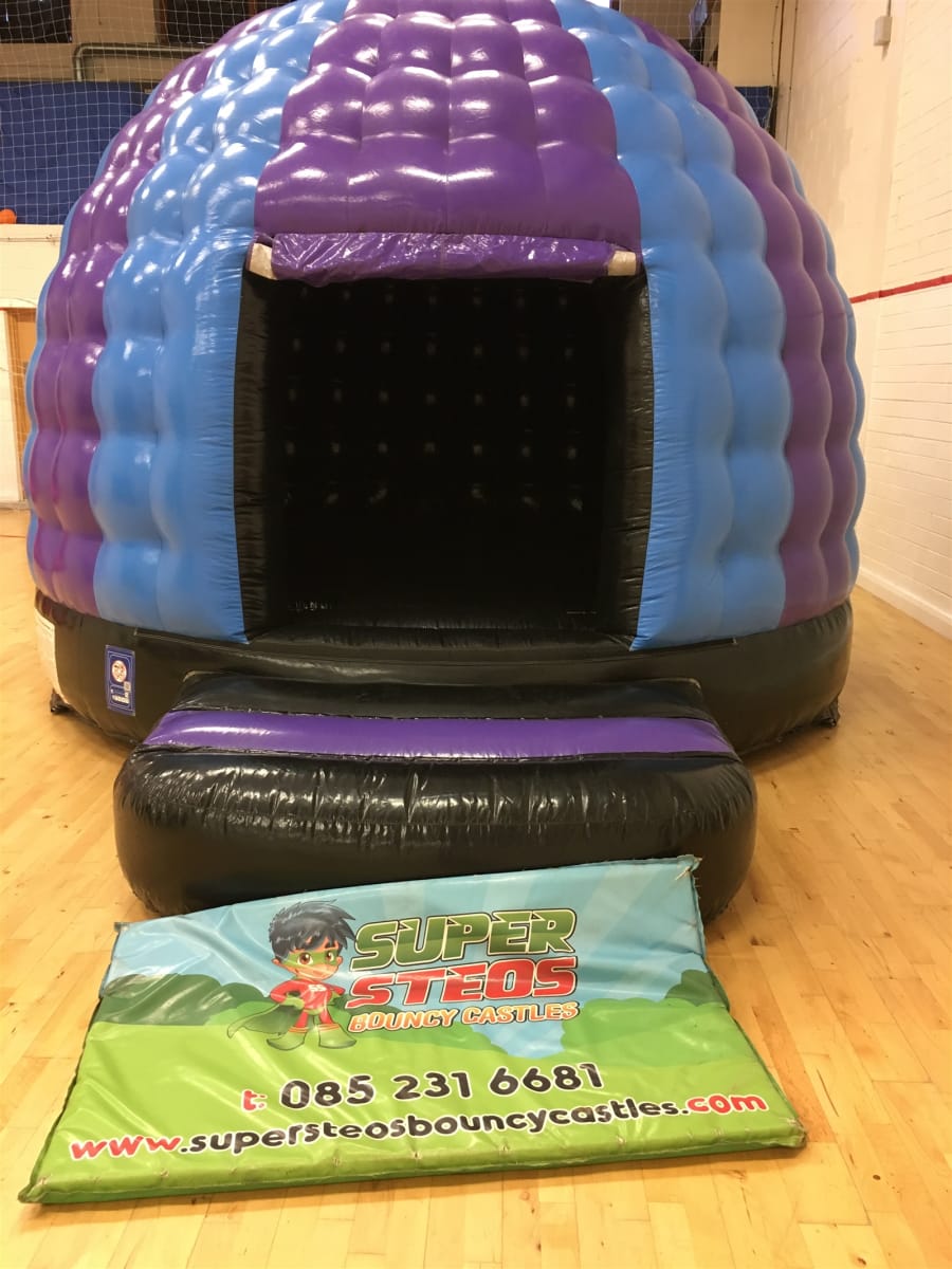 This color scheme purple and blue we have 3 the exact same size and shape in our hire fleet and 2 Disco Dome 13 Feet x 15 feet P19075A Coloured Front in our stock showing how very popular these style domes are.