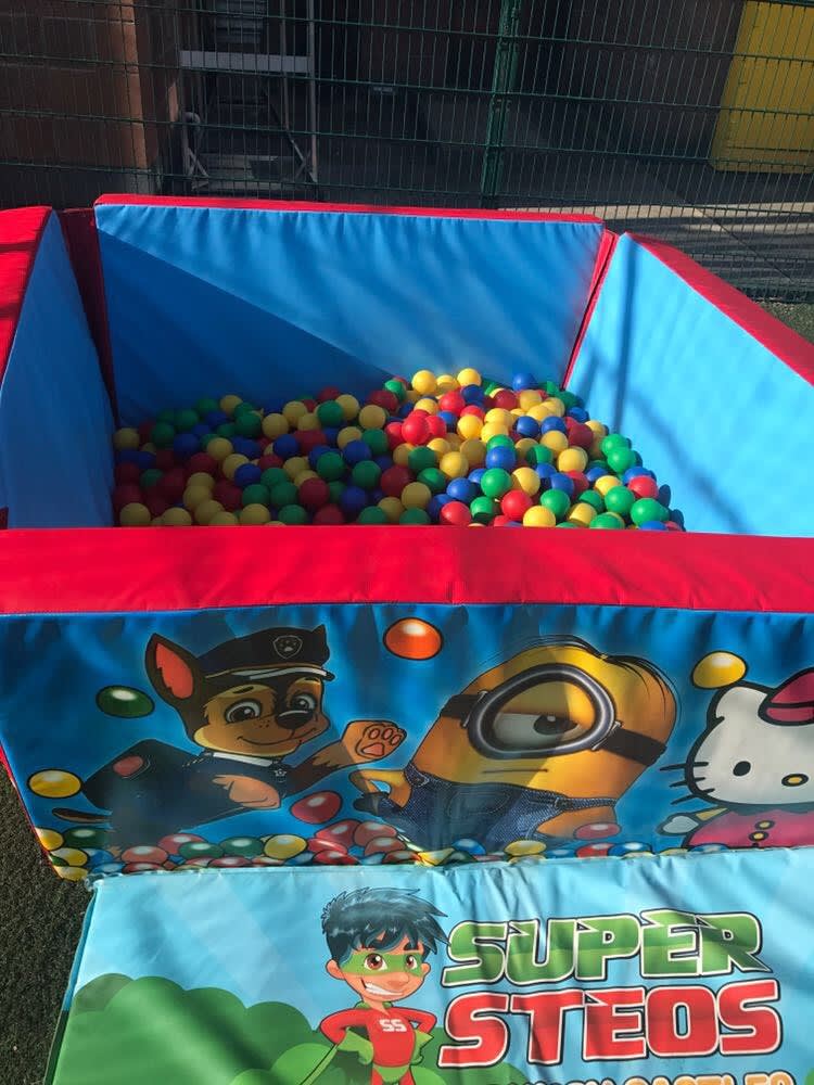 The walls are very sturdy as they are stuck together with some strong velcro at the coroner to hold them in place! The walls are at a pretty good height that none of the kids under 3 will be wandering around once placed inside the ball pen. We also bring around 1,000 or so balls to fill up the ball pool. We charge 70 for this ball pen but we take a 20 euro deposit and give it back if the balls are picked up.
