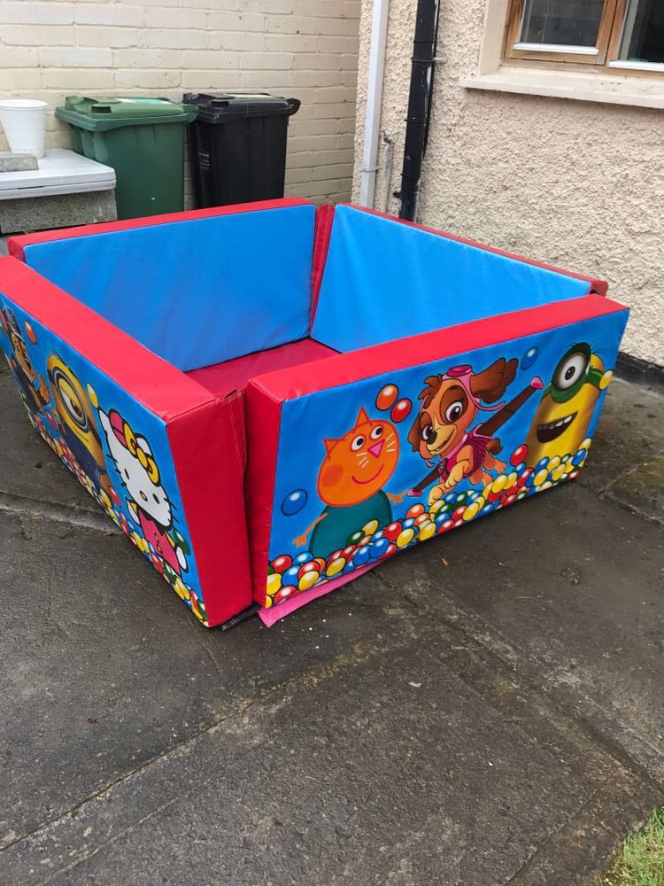 Our indoor ball pen soft play. Is made of foam and then wrapped in PVC and printed in some awesome colorful artwork.We get lots and lots of inquiries for something a little different for children with disabilities or maybe they just don't like the noise and craze of a normally bouncy castle. also has no blower no extension leads as its all padded foam. This is why this is to the market!