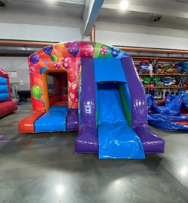 Bright, safe, and fun. The 12 ft x 18 Ft Multi-coloured Bouncy Combo (38) is a bouncy castle with slide designed for boys and girls. 🎉 This compact combo packs a bounce area and a slide into a vibrant, eye-catching unit. Perfect for birthday parties, community events, and backyard fun.