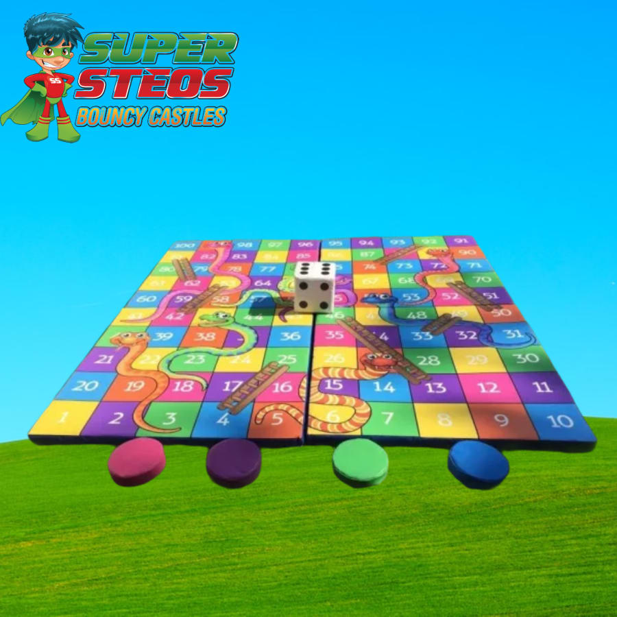 Everyone knows this game could be the most popular game. Snakes and ladders can be enjoyed by children and adults alike. Sure to keep everyone enterained and to cause quite a stir! This set up comes in 4 square printed mats style and joined together by velcro. Making it different to others on the market where it is more like a sheet on the ground.