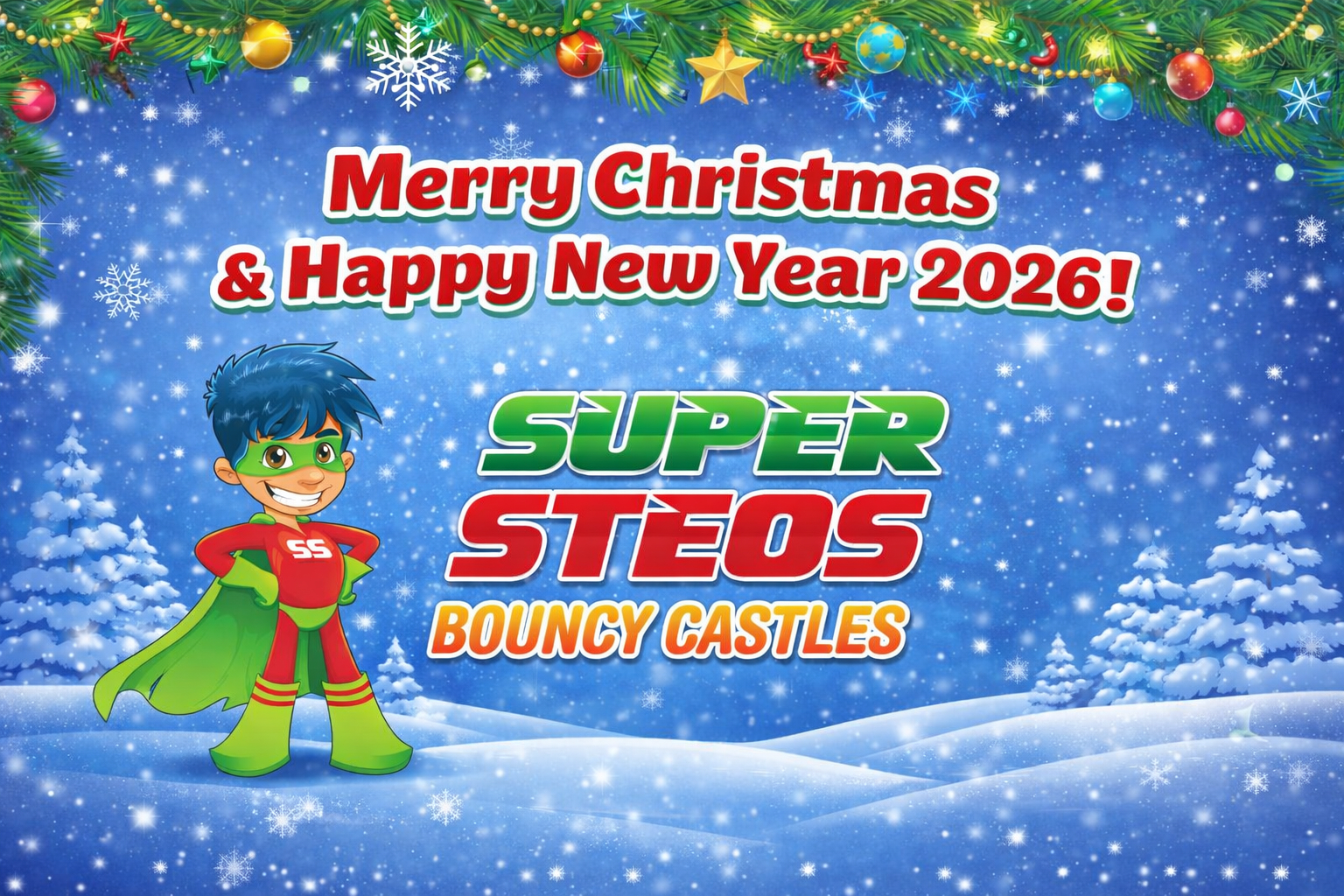 As the festive season is upon us, all of us here at Super Steos Bouncy Castles would like to wish our customers a very Happy Christmas and a Happy New Year 2026.