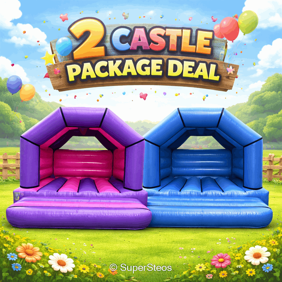 Planning a private party? Book the bouncy castle hire 2 12 X 12 Bouncy Castles Package in Dublin, Kildare, Wicklow, Meath and get two full-size 12 x 12 bouncy castles for one great price. This private parties only package saves you €20 and doubles the fun for birthday parties, family gatherings, and community events. 🎈